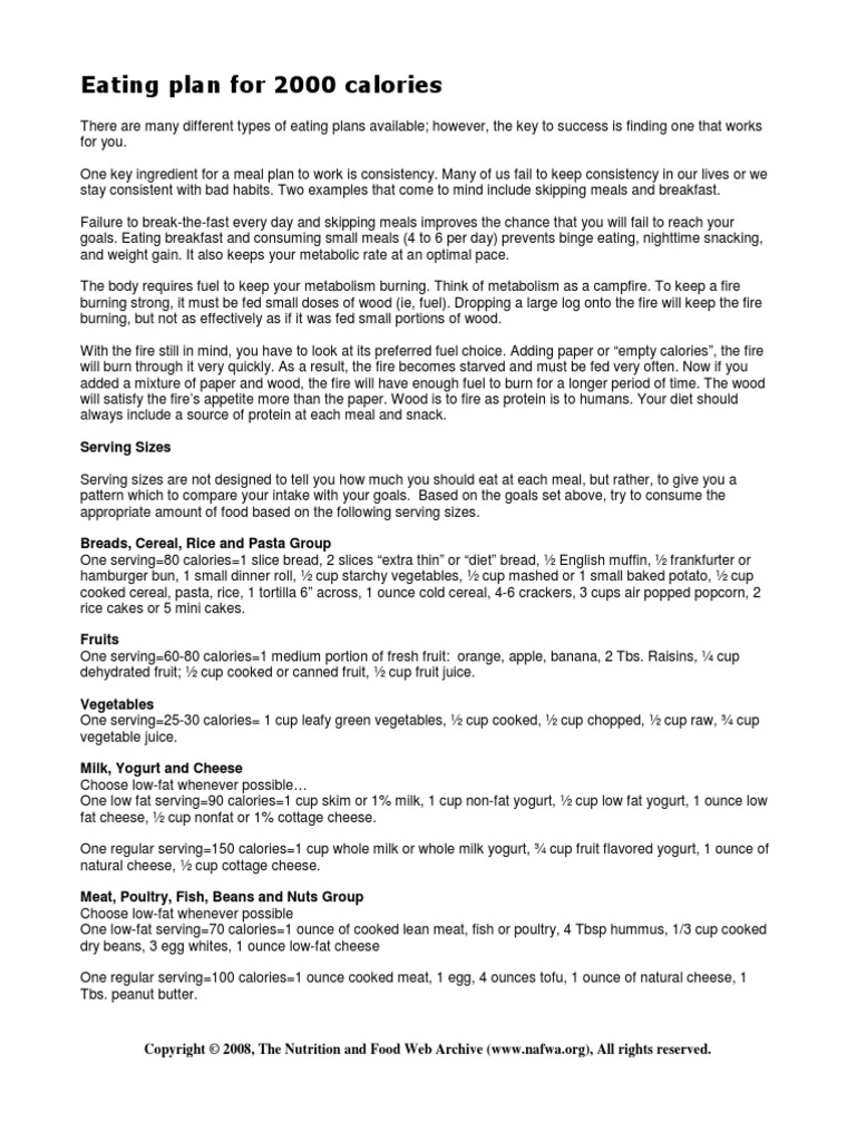 2000 Calorie Printable 2000 calorie meal plans PDF. 12 cup 80 grams of peas. Printable 2000 Calorie Meal Plan.